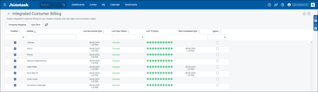 NOTE : La facturation client intégrée est disponible pour tous les clients dans Kaseya BMS. Dans Autotask, elle est actuellement activée pour certains clients dans le cadre du programme d'accès anticipé ; cependant, elle sera mise à la disposition de tous les clients à une date ultérieure. Pour plus d'informations, reportez-vous à la page Autotask 2023.2 release notes.