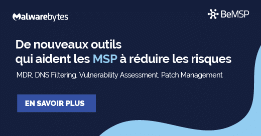 BeMSP, le spécialiste français des solutions pour les MSP (prestataires de services informatiques managés), distribue les solutions de sécurité Malwarebytes. Pour en savoir plus, vous pouvez consulter la page Malwarebytes sur notre site ou demander une démo :