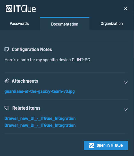 Intégration de IT Glue : documentation et mots de passe intégrés
