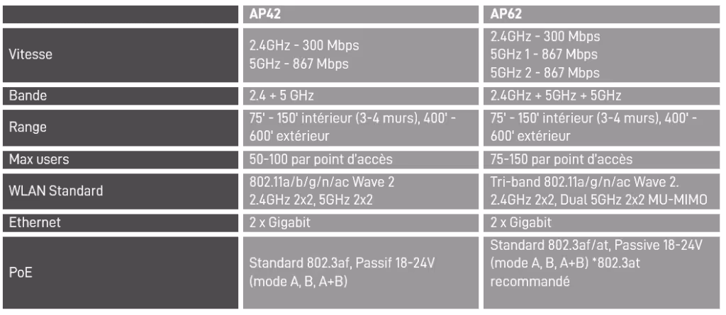 Datto Networking WiFi inclut tout ce dont vous avez besoin pour déployer facilement et rapidement des réseaux WiFi sur un ou plusieurs sites. Chaque équipement comprend :