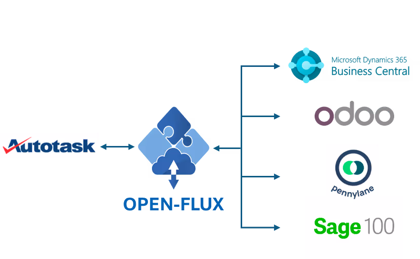 Open Flux offre aux prestataires informatiques la possibilité d‘interconnecter la solution Autotask PSA de Datto avec une multitude d’ERP et de CRM pour mieux facturer leurs services.