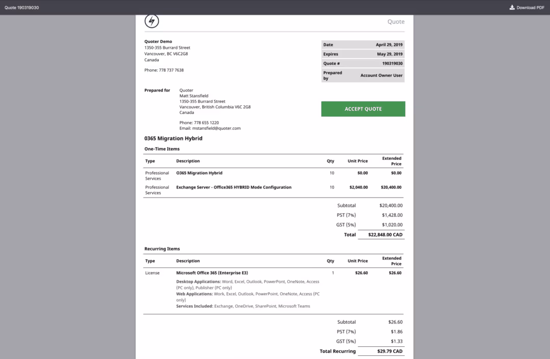 Créez plus de devis pour vos produits et services informatiques, éliminez les obstacles à la signature et soyez payé plus rapidement avec Quoter